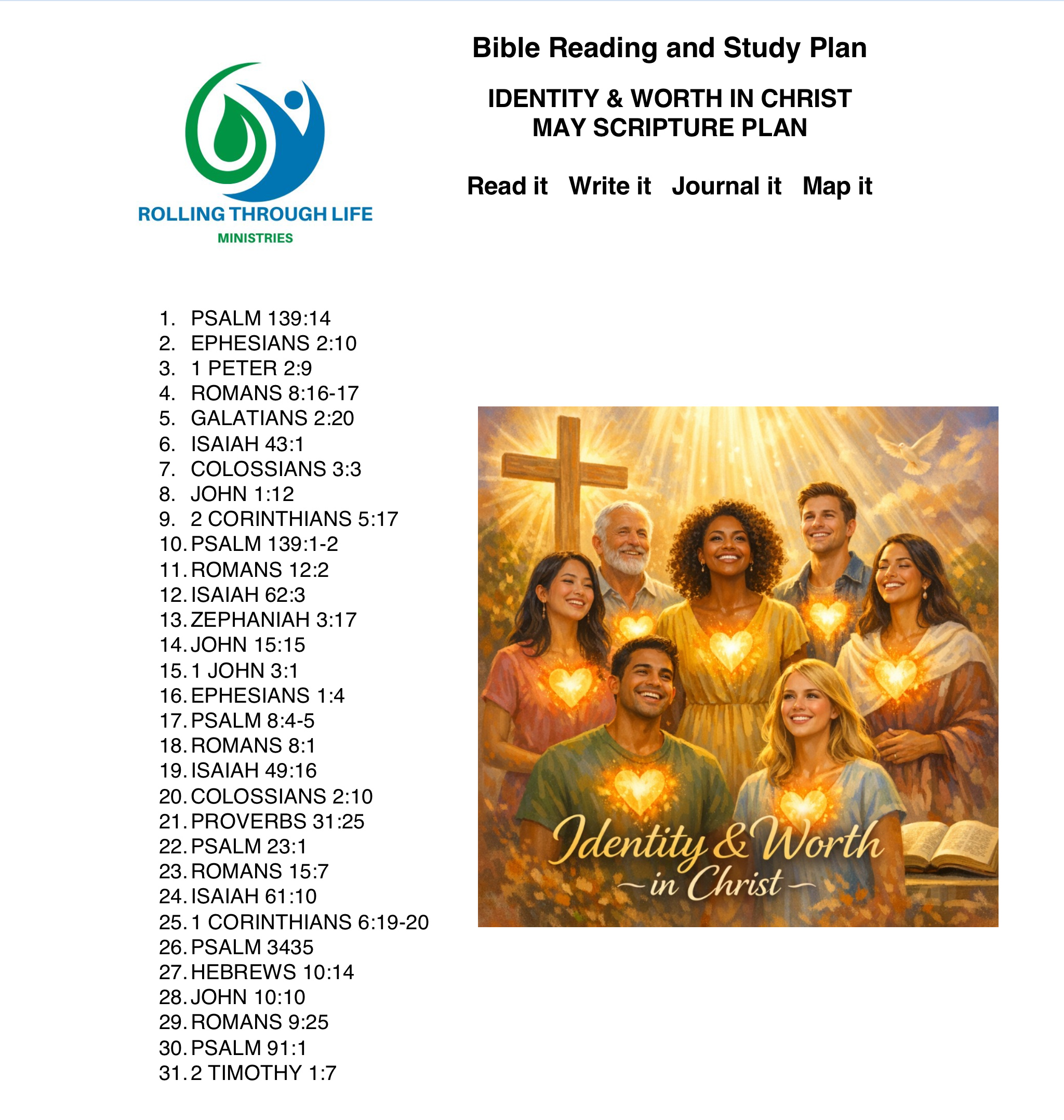Below is a list of Files available to download for free. This curated hub features fresh, topical monthly reading plans that you can download, print, and explore at your own pace. Each monthly topic focuses on a central theme, bringing clarity and structure to your quiet time. Embark on a transformative journey where each month brings a new focus on specific topics and scriptures to guide you toward spiritual growth and renewal. From January to December, dive into themes that ignite hope and empowerment, starting with ‘New Beginnings and Renewal’ in January and February’s topic is ‘God’s Love and Compassion’. You get the idea. Enjoy and don’t forget to journal it and verse map it! You are given permission to resize as needed or print according to your size preferences.